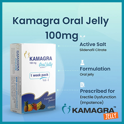 Kamagra 100mg jelly jöle kıvamında olan, sildenafil içeren, çeşitli aromalara sahip bir sertleşme bozukluğu ürünüdür. Etkisini hap formuna göre çoğunlukla daha hızlı (15-20 dakika) gösterir. Aromalı sıvı formdadır ve çiğnendikten sonra cinsel uyarılmanın etkisiyle hızlıca etki etmeye başlar.